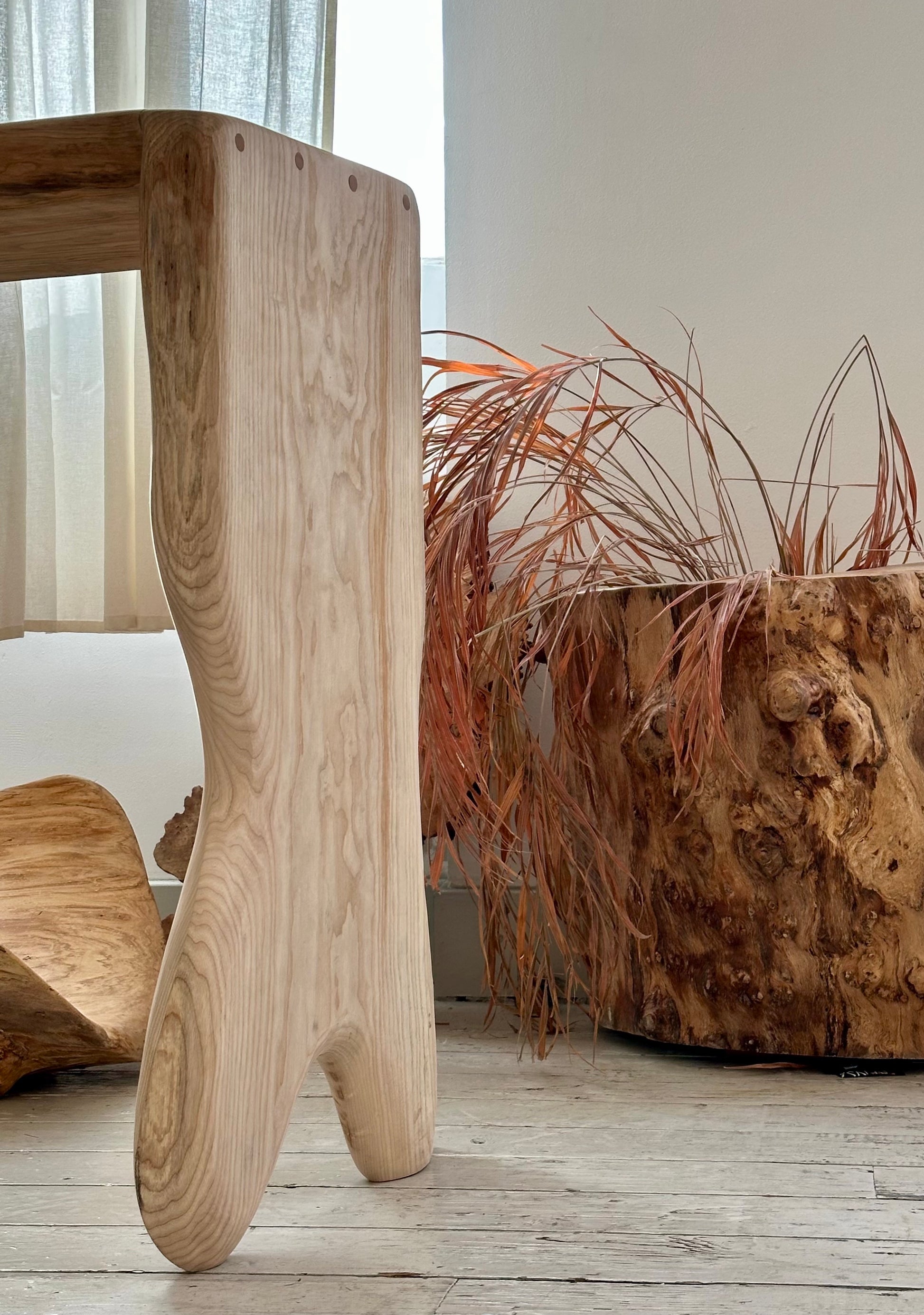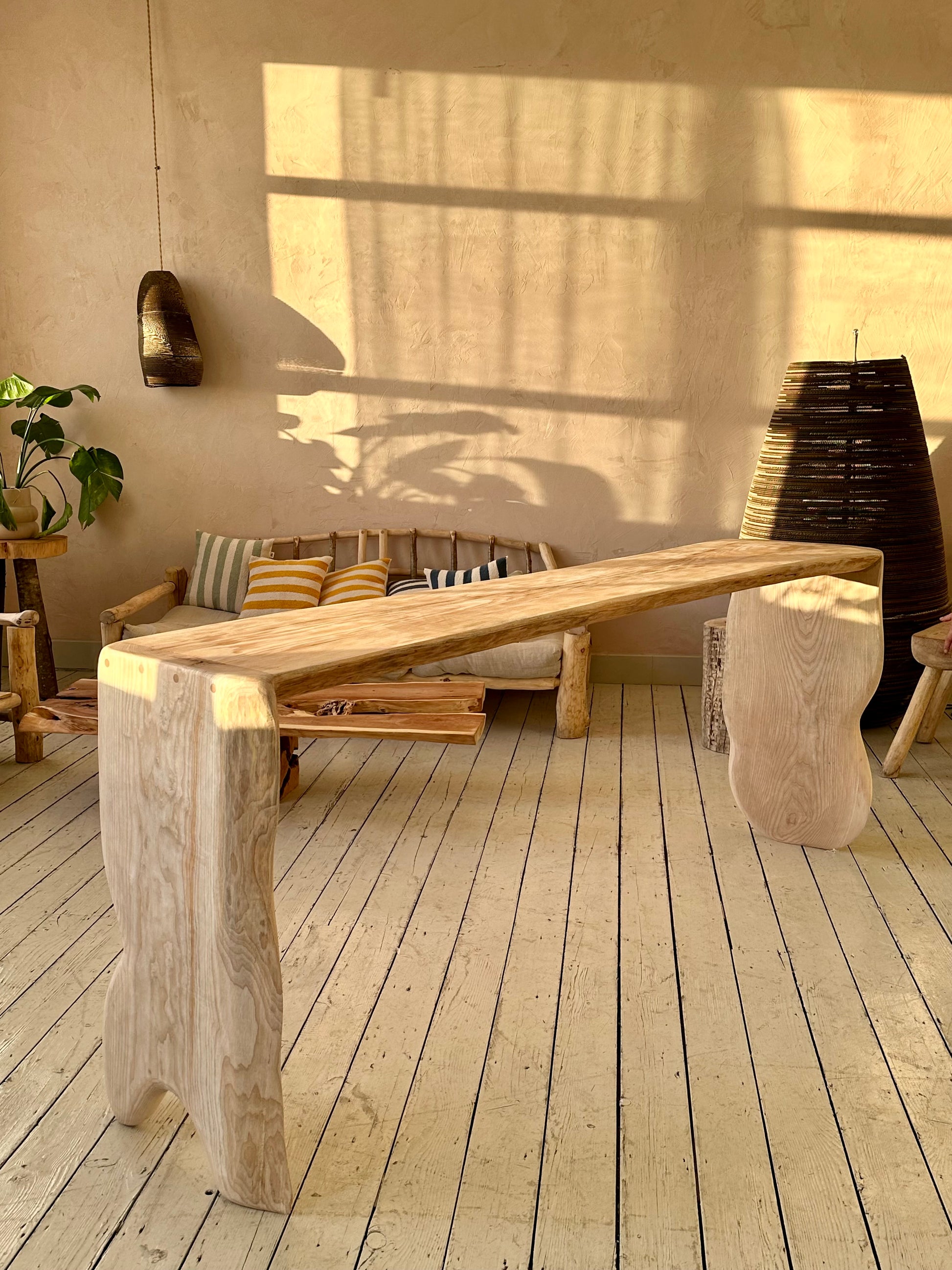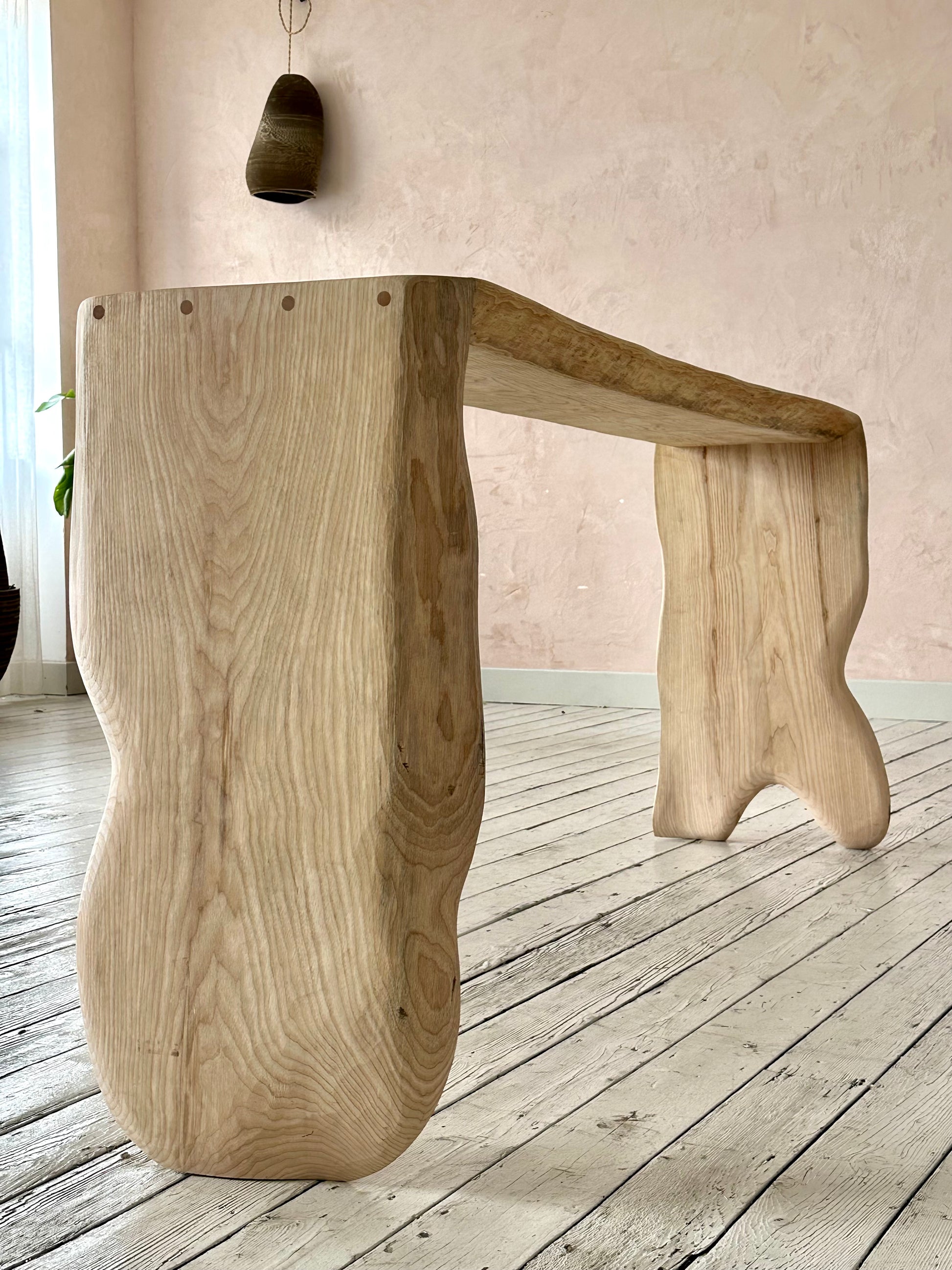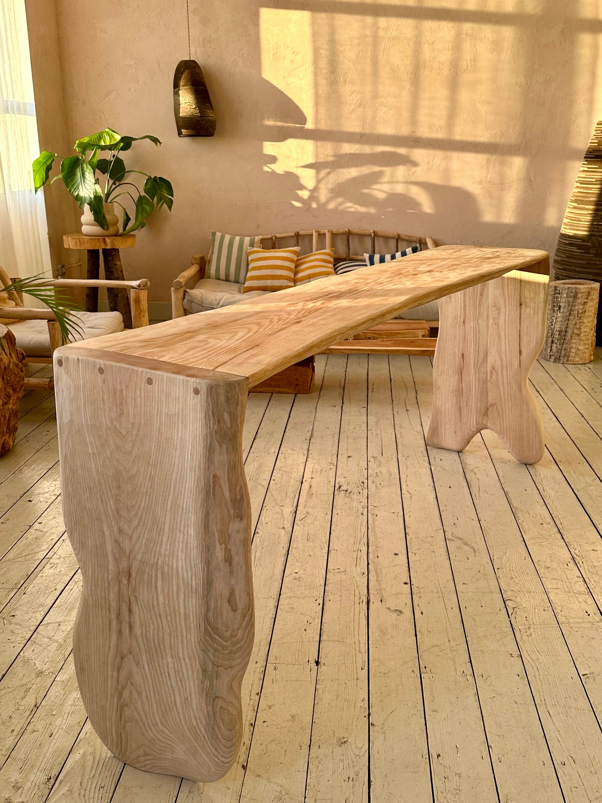 This long ash bar has been carefully hand sculpted from top to legs, showcasing a light flow that marries the beautiful wood.