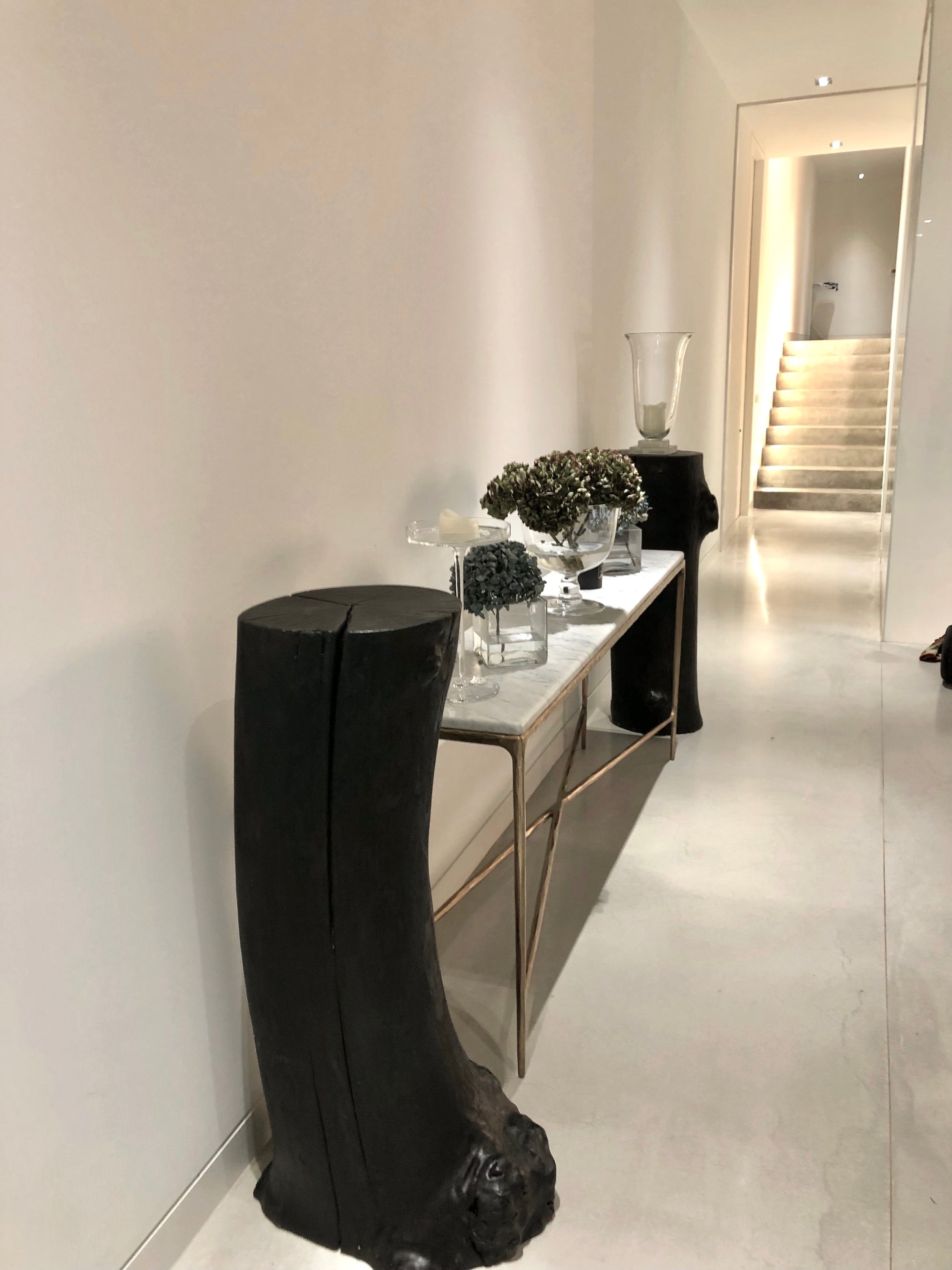 Made from fallen oak, with its lovely detailed textures that we've enhanced with our charring technique, resulting in a classic yet organic sturdy center piece.