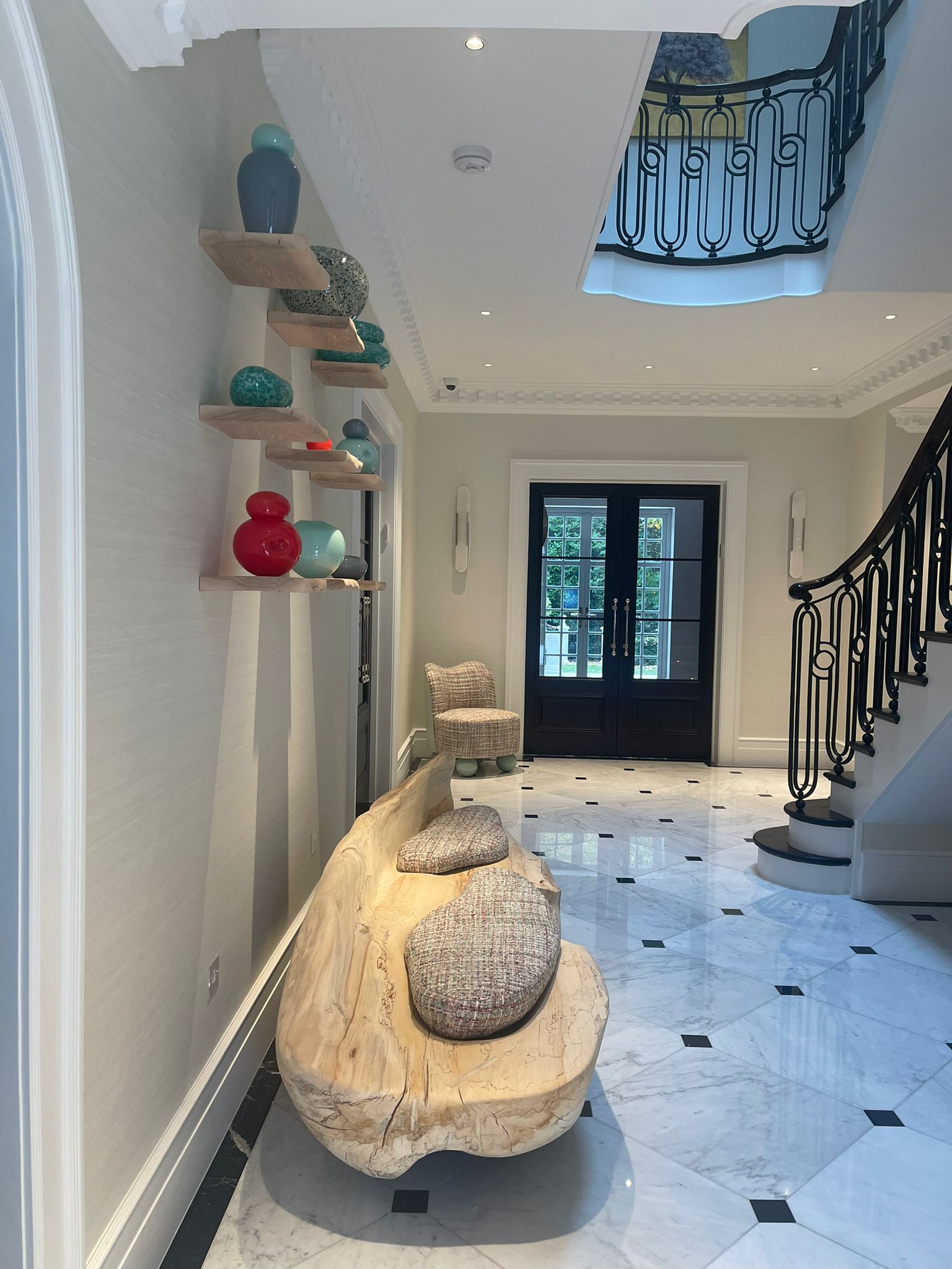 This huge sculpted bench was commissioned for a lovely home in Hampstead from a fallen tree that we had kept..